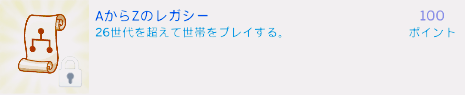 Sims4にある実績、「AからZのレガシー」の達成を目標とする、のんびりとした記録になります。