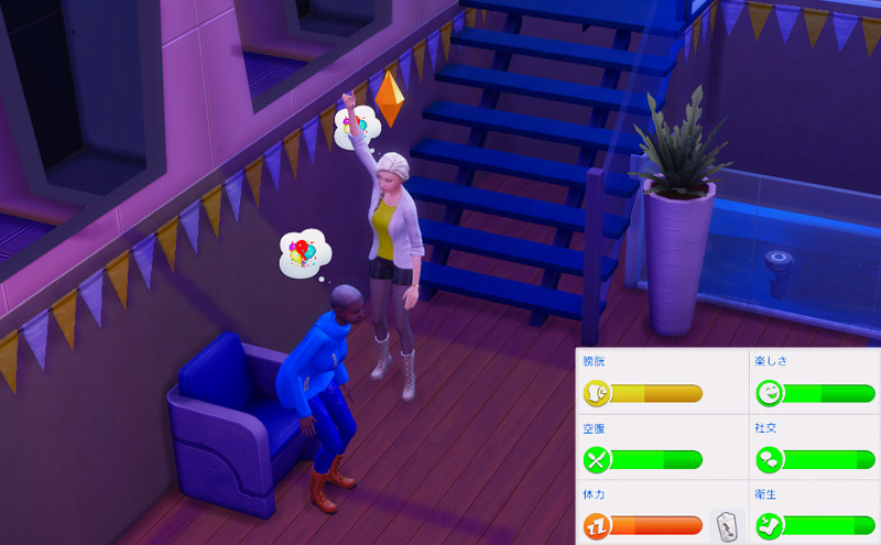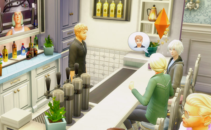 アルマの隣に座っている人(彼も自シムの一人)と三人で話していたのですが、アルマは度々バーテンダーのふきだしを出していました。