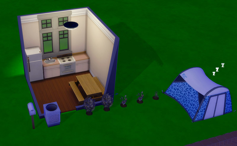 明るい未来が見えてきたことと、手持ちが3100シムオリオンほどあったので、掘っ立て小屋レベルの建物を作りました。