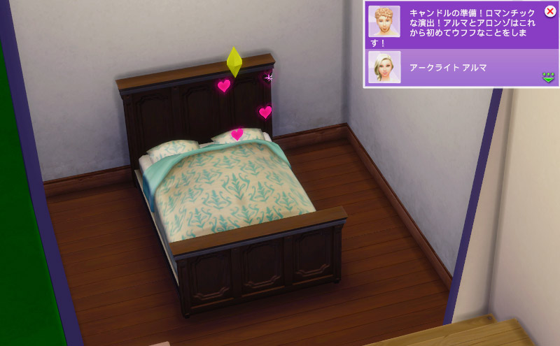 ご飯を食べて、トイレに行って……と指示してから、ゲーム内時間で二時間後くらいに起きてきたアロンゾさんを捕まえて恋愛アクションを続けていると交際を申し込めるようになったので申し込み、了承をもらった勢いでファーストキスもしました。