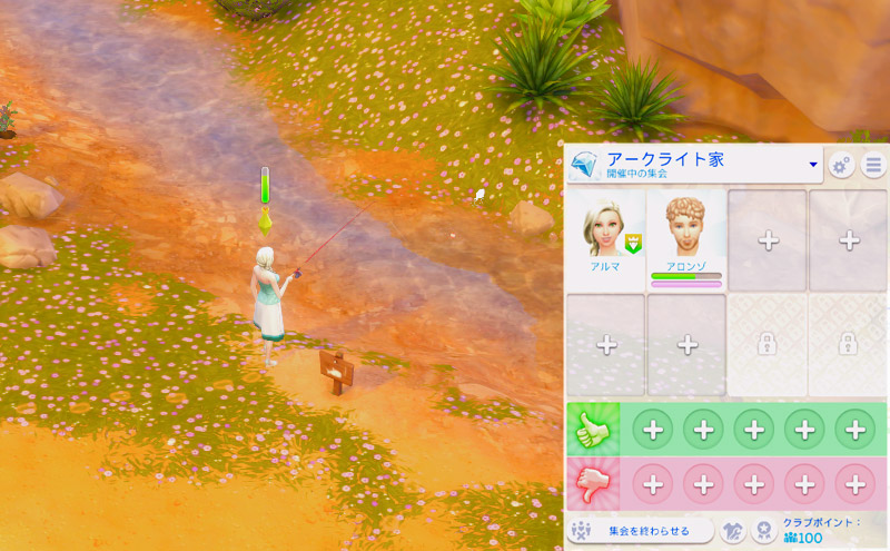 公園の敷地外でアルマが釣りを、アロンゾさんが周辺の採取をしている間に、初日に作ったクラブを稼働させ始めました。