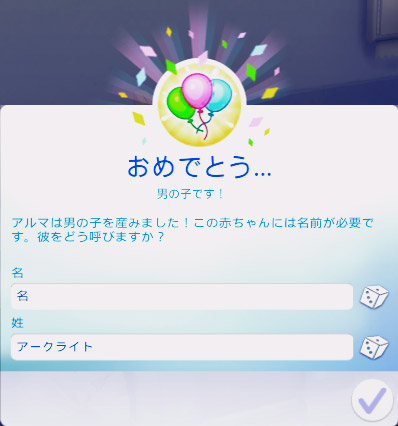 そしてこのポップアップで苗字をアークライトに変えていないことに気づいたので、このあとで修正しました。