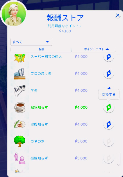 ちまちま進めていた願望と、気まぐれの消化でポイントが4000超えたので、眠気知らずを取っておきます。