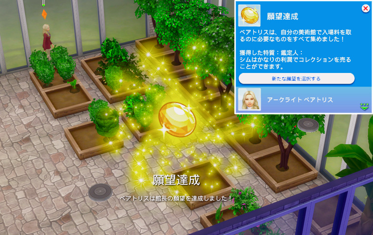 謎の一人チェスの後、継承者のベアトリスに温室の作物を収穫してもらっていたら、早くも願望達成しました。