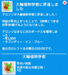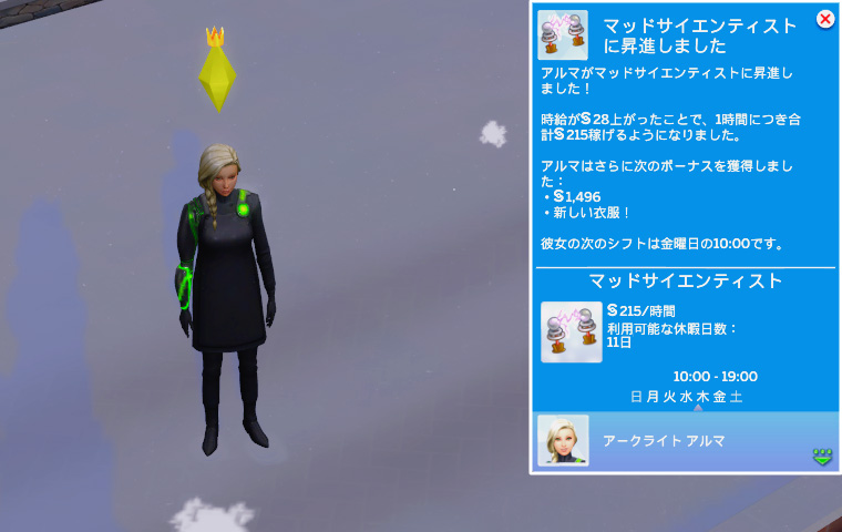 昇進するだろうと思っていたので、今日はアルマについて行かずに家で他のシムを見ていました。