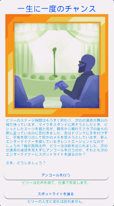 出来たばかりの恋人との初めてのウフフの後、出勤したビリーにイベントが発生したようです。