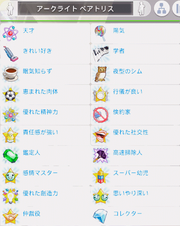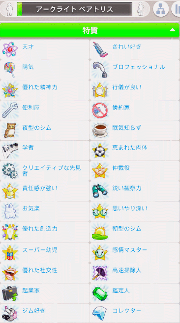 「育ち」で得られる特質で優秀なのはマナーを良い水準まで上げた際に得られる「行儀が良い」だと思っています。この特質を持っているシムが行える「礼儀正しい自己紹介」が便利なので。