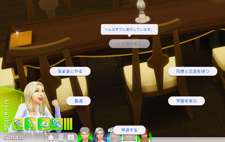 緑のもやをまとっている人が複数いましたが、無事に10人のシムに自己紹介をしてから帰宅します。