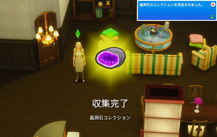 アロンゾさんとのお別れで忘れそうになったシグザムで拾った未研磨の晶洞石を磨いていると、また一つコレクションが完成しました。