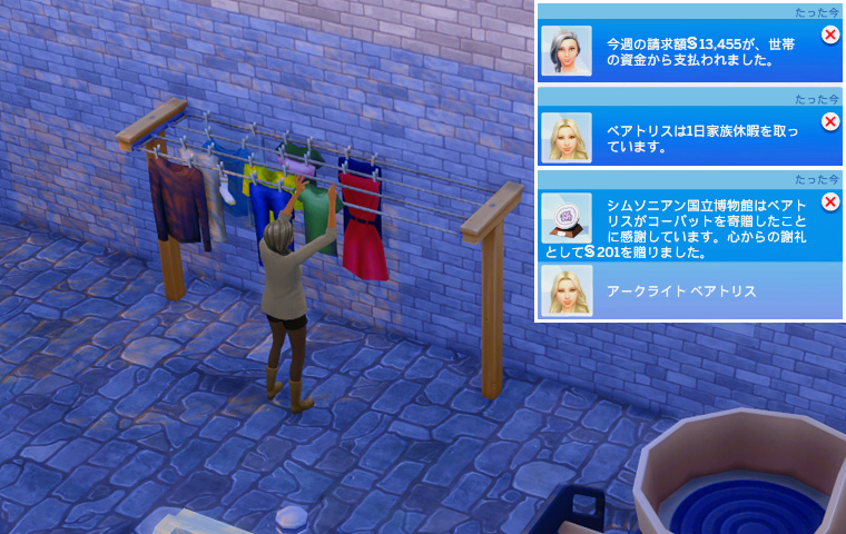 アルマが洗濯物を干している姿を見ていたらベアトリスに陣痛が来たので、病院に行ってきてもらいました。