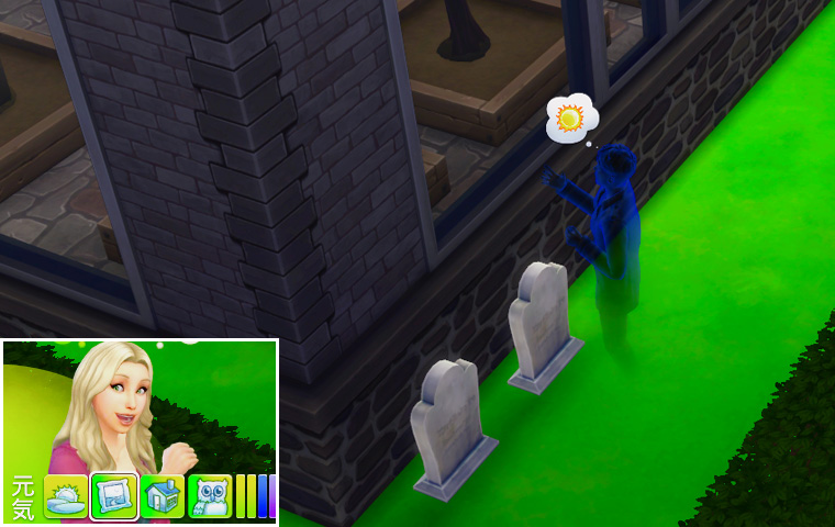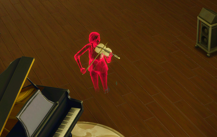 初めてゴースト姿を見るな~~、嬉しいな~~、でも君が得意な(スキルを上げていた)楽器はピアノでは?? と一人ツッコミを入れるプレイヤーをよそに、アルマは暫くなんとも言えない音を奏でた後、夜明け前に墓に戻っていきました。