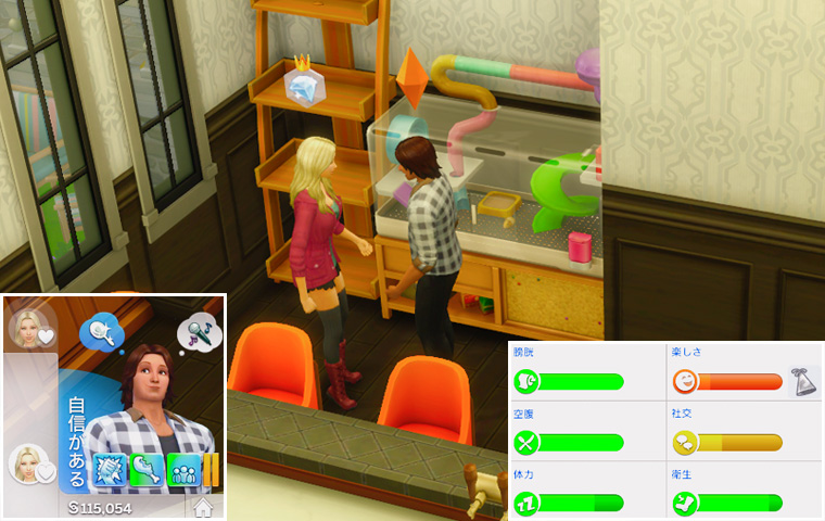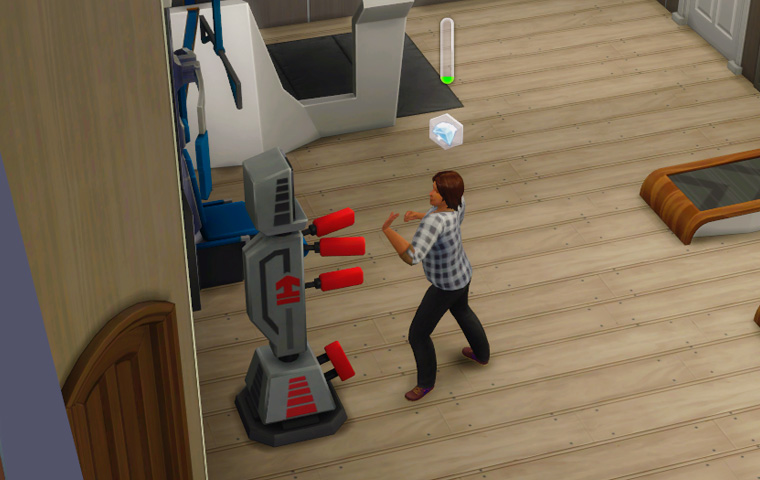 オレンジくん、見た目はムキムキ(CAS画面で確認したところ筋肉はほぼ最大値)なんですが、フィットネススキルは1なんですよね。ちょっと気になったので、隙を見てやっていってもらいます。