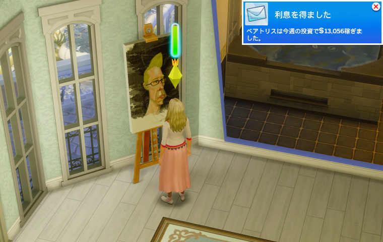 起きてきたベアトリスが自律で絵を描いているのを見ていたら、途方もないお金持ちの願望達成で付与される特質、利口の通知が。