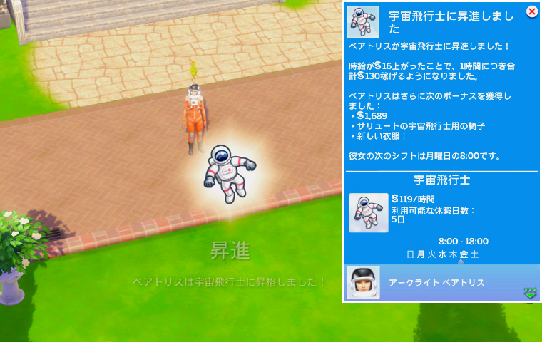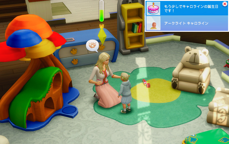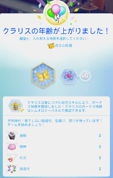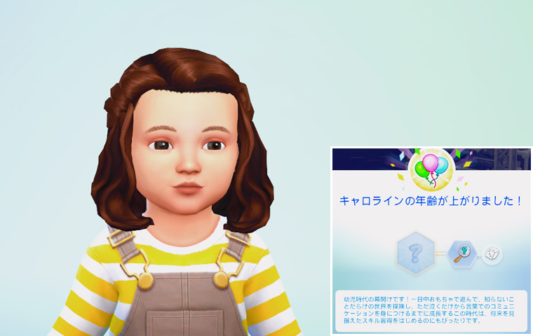 クラリスの誕生日の数時間後、大学の授業から帰ってきたばかりのオレンジくんに指示してキャロラインを成長させたのですが、見事にその辺りのスクショがありませんでした。