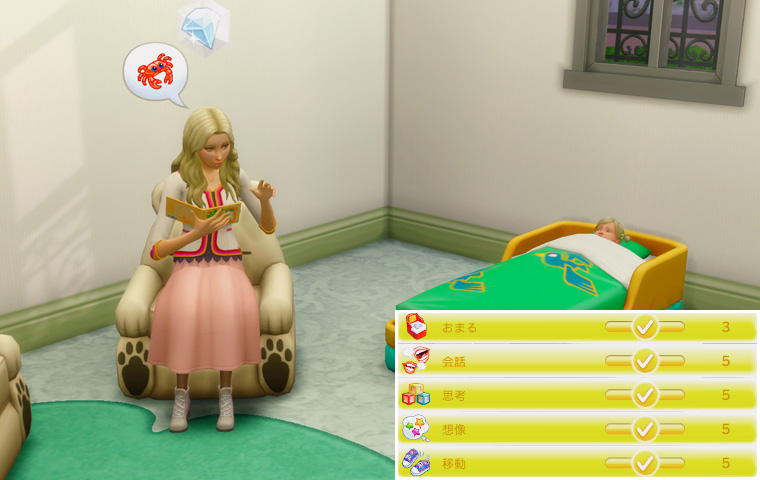 無事にクラリスのスキルを全て上げ終わったので、絵本を読んで寝かしつけます。