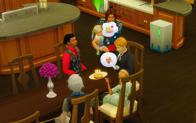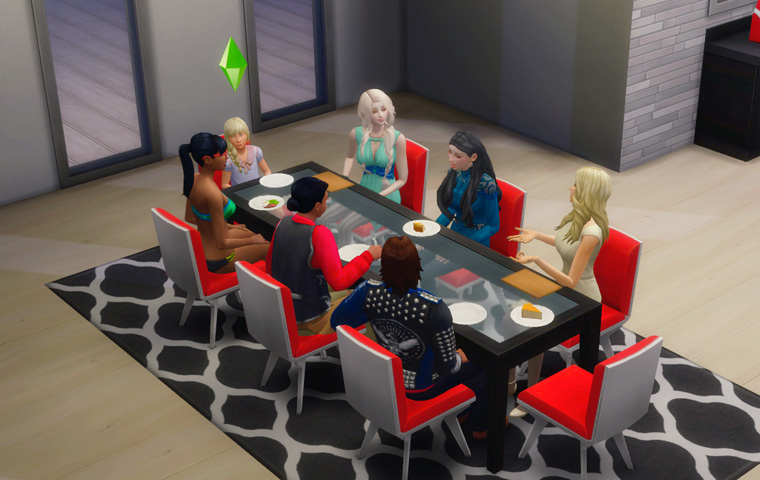 一番左のシムがカレブさんと結婚しているので、このうちの三人は身内だったりします。
