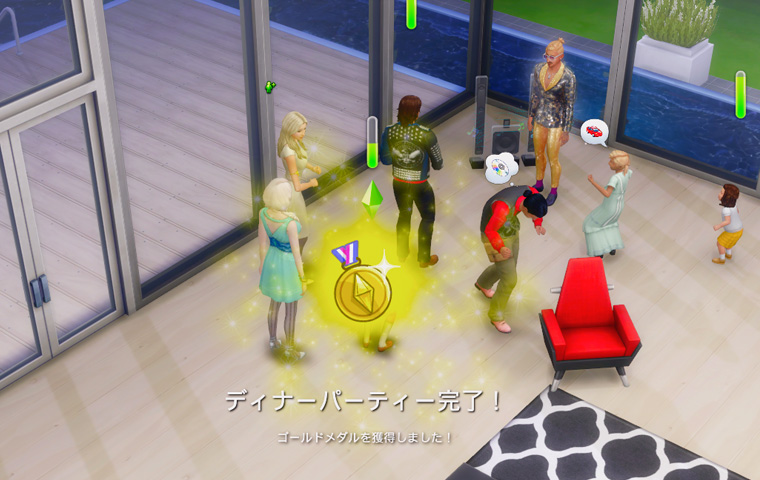 5ヶ所のユニークなロケーションでパーティーに参加する、という項目があるので、家ではなくオレンジくんの実家での開催です。