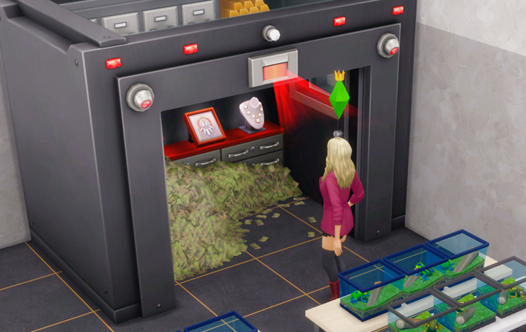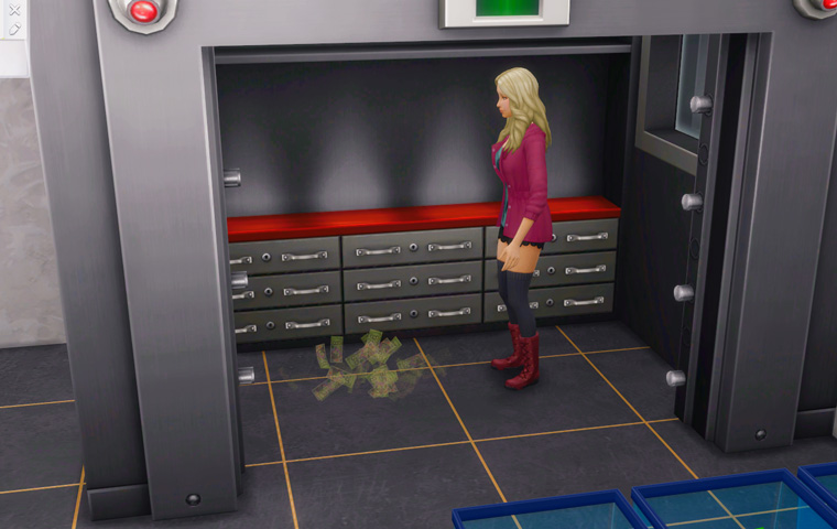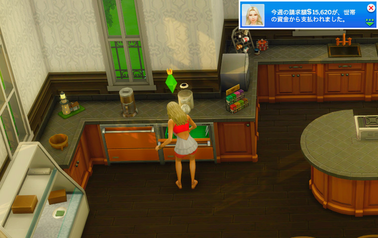 世帯の資金もだいぶ増えたので、コレクションルームに設置しておいた金庫にシムオリオンを入れてみようと思い立ち、ベアトリスにやってもらいました。