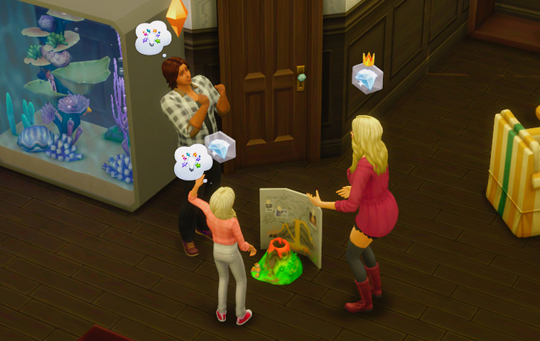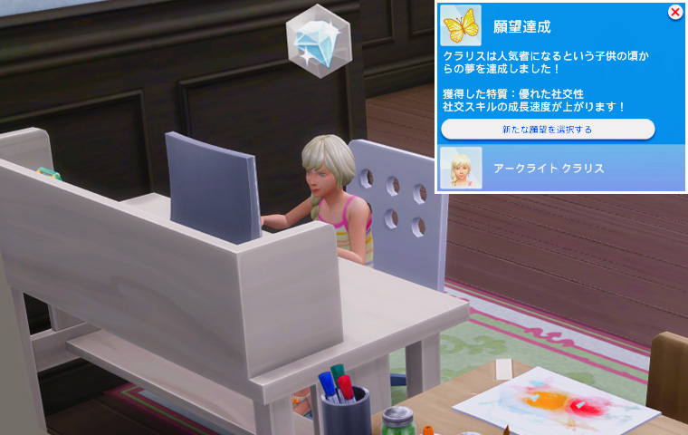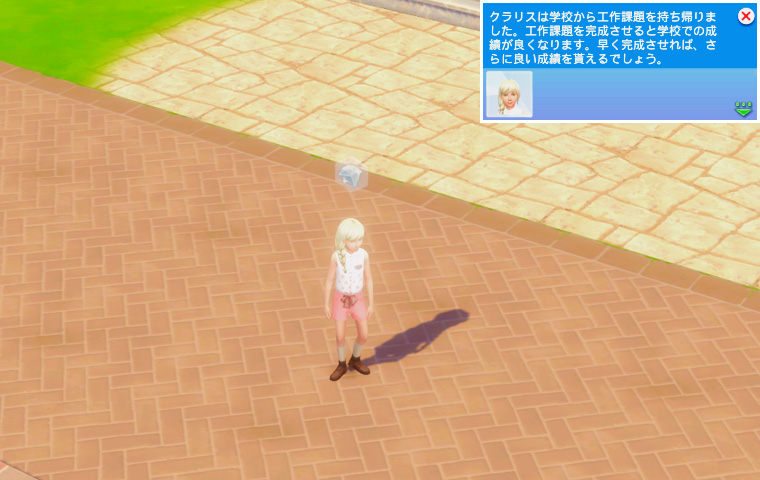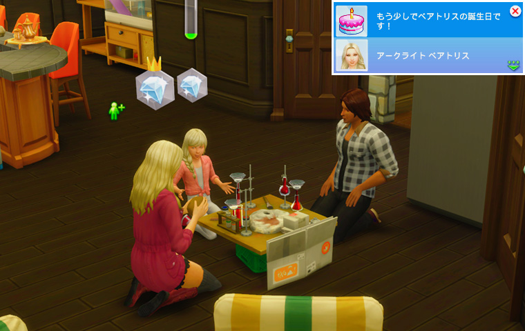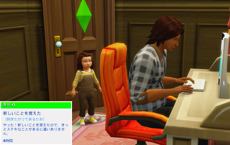 完成までに一時間くらいかかるのですが、参加したシム同士の友好関係も深まるし、スキルも上がるしで、いつもなるべく家族総出で取り組んでもらいます。
