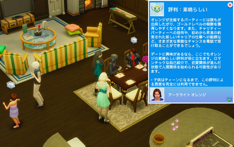 パーティー終了後、オレンジくんの評判が上がりました。パーティーばかりしているためか、アルマのときより格段に上がるのが早かったです。