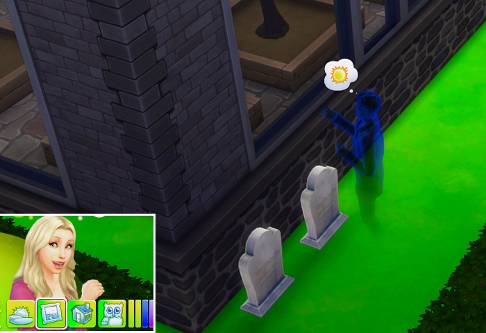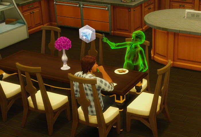 今まで何度か加齢ONプレイはしてきたのですが、家の敷地内に墓を置いたことがなかったのでゴーストが食事するとは思っておらず、びっくりして撮ったスクショです。ゴーストがご飯食べるなら、心持ち多めに作って置いた方がいいのかな~…