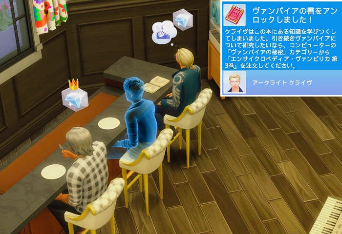 アークライト家代々の男性陣が並んでいたので、撮ってみました。クライヴは皆が寝静まった後、ヴァンパイア学のスキルを地道に上げています。早く日光耐性を取りたいんですよね。何回も言って(書いて)いますが、事故死の危険性があるの…