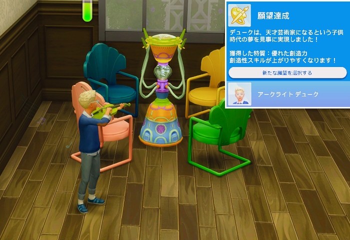 ひらめきのムードレットを得られる装飾品が置いてある部屋の中で弾くよう指示したはずなのに、いつの間にか廊下に出ていたデュークが、姉よりも先に一つ目の願望を達成しました。因みに一階のひらめき部屋は音楽室、二階は執筆と絵画の部…