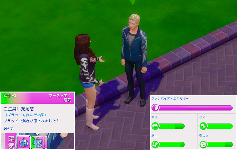 クライヴはブラッドを飲んで満足していますが、ベアトリーチェちゃんには不快のムードレットがついていました。