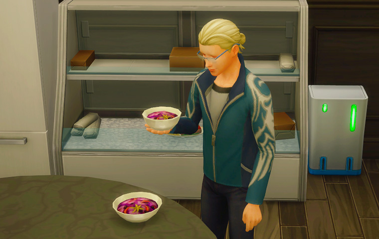 しかしこれを冷蔵庫に置いておくと、他に食べ物があるのにこれを食べようとする家族がちらほら出てきて困りました。ずっと所持品に入れて持ち歩くために、フレッシュシェフの特質が欲しくなってきます。
