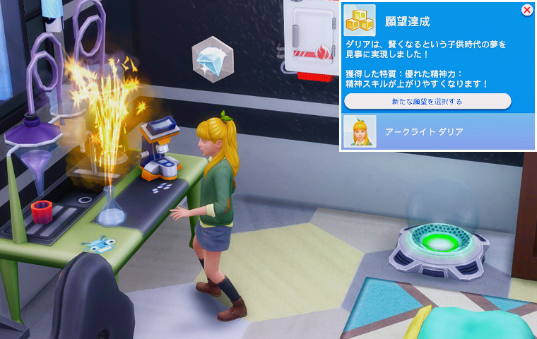 ダリアの小学生時代最後の願望になったのは天才芸術家なのですが、ダリアは天才特質持ちなので集中のムードレットがつきやすく、ひらめきのムードレットを獲得出来る部屋に入ってもひらめき状態にならないことがあります。