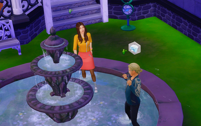 今晩もベアトリーチェちゃんが来てくれたので、設置したはいいものの、これまでほとんど活用していなかった噴水で遊んでみます。楽しそうで何より。