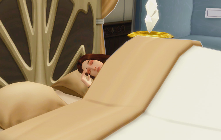 ウフフの後、ベアトリーチェちゃんは体力の限界だったのか、二階の空いているベッドで眠りに就きました。寝顔がなかなか可愛いです。