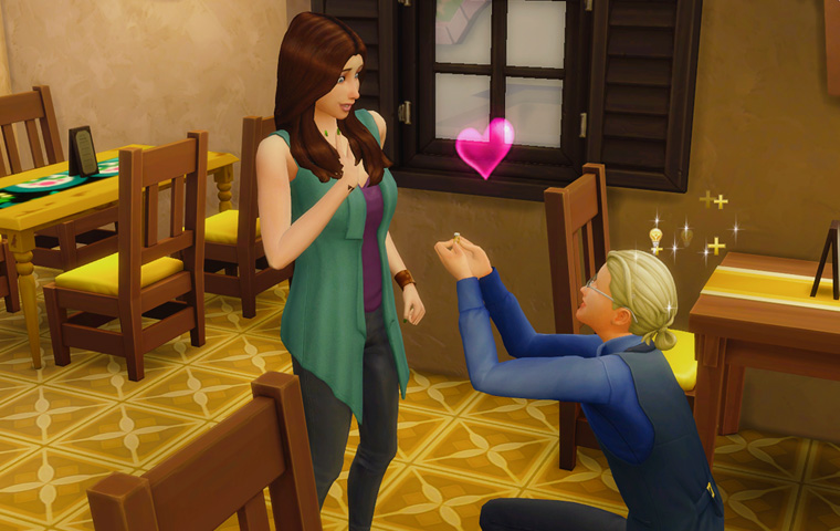 案内された席が二階だからか、料理がなかなかやってこないのであちこち移動しながら楽しく会話をしていた二人ですが、席の近くまで戻ってきたので勢いでプロポーズします。