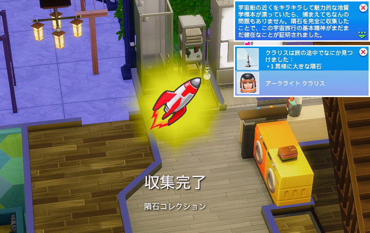 おかわりのウフフ(今度はシャワー)が発生したのを見守っていたら、弟が取り込み中だったため、代わりに宇宙に出ていたクラリスが持っていなかった隕石を見つけてくれました。