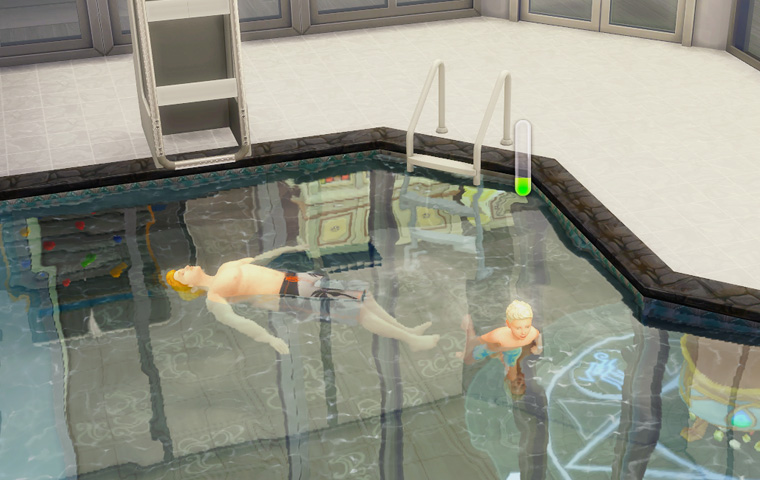 上記スクショを撮った際に近くにデュークがいないぞ? と思って探したら、作ったはいいもののほぼ誰も自律で使わないプールで泳いでいました。