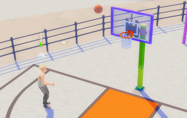 デュークはフィットネススキルを上げておきたかったので、バスケットをやることに。家には設置していないものなので、この機会に楽しんでくれるといいな~。