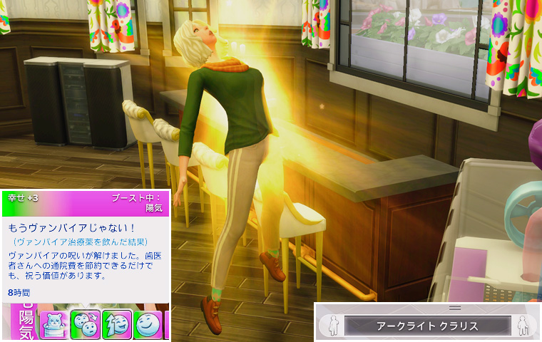 若さの薬は飲んでいないので、考えられるのはヴァンパイア化してから人間に戻ったことかなあ、と思ったので、スクショを撮っておきました。