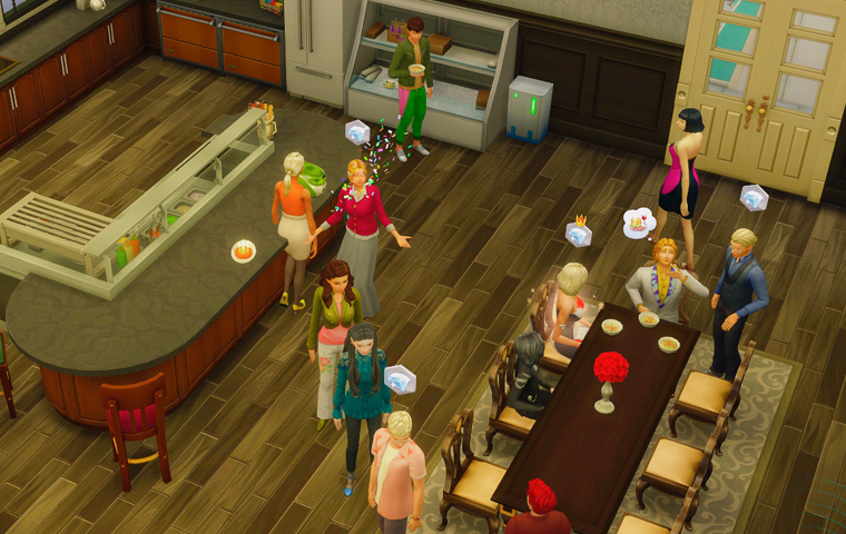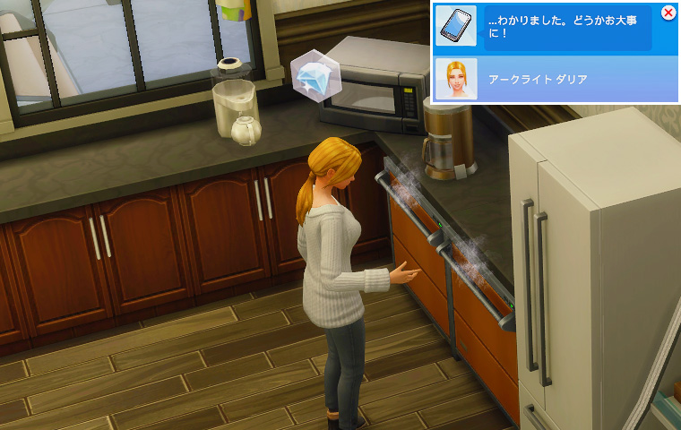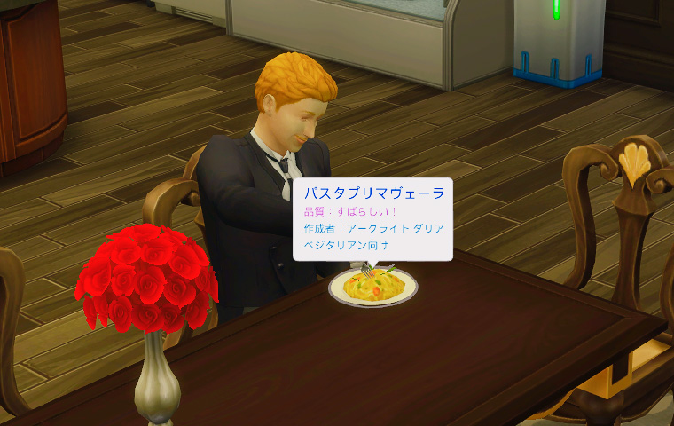 最初の頃は軽食を作って食べていたことが多かったのですが、いつからか冷蔵庫や陳列ディスプレイからアークライト家のシムが作った料理を食べるようになっていました。