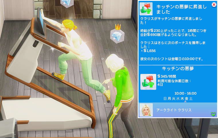 因みにスクショは自律で運動し始めたダライアスくんを見かけたので、フィットネススキル10のクラリスに指導をお願いしたところです。