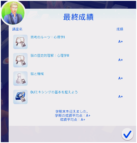 パーティーの途中ですが、金曜日の18時になったので大学の一学期目の成績通知が来ました。全てA+なので幸先が良い感じがします。