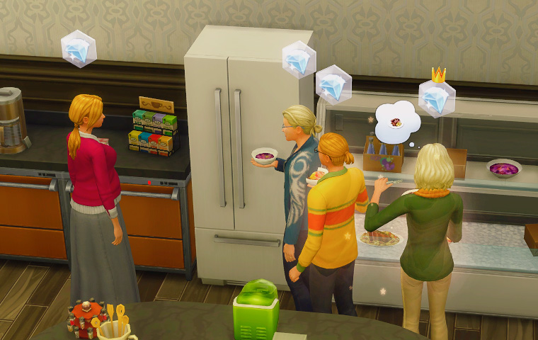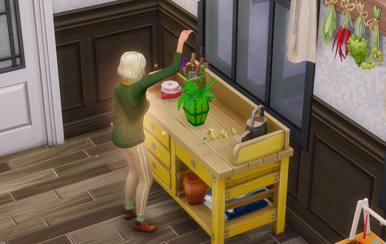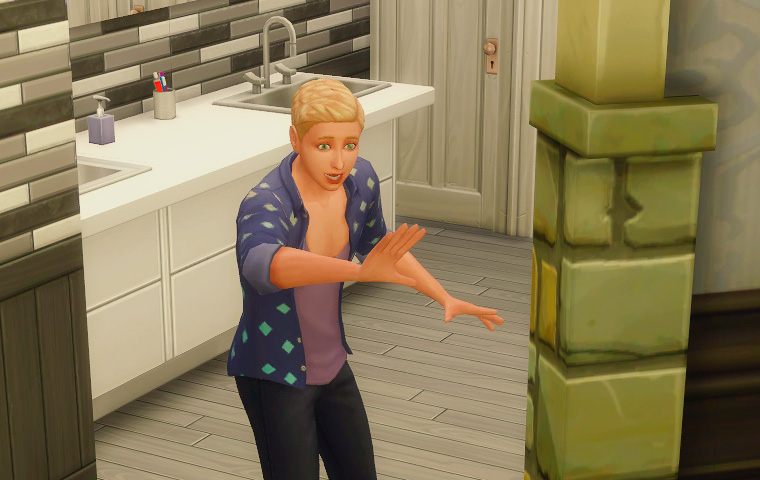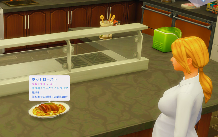 七月末頃のアプデ以降、またシムの動作が少しおかしいというか……料理の皿を取った後に立ち食いすることが増えました。これはその様子を撮影したものです。