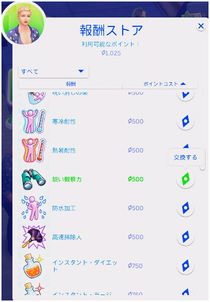 少々悩んだのですが、これから願望達成のため、家族以外のシムと話す機会が増えそうなセルジュくんに鋭い観察力を取ってもらいました。
