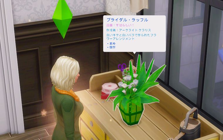 じわじわと上がっていっているフラワーアレンジメントスキルも7になったので、傑作を作れるようになっています。