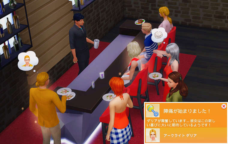 デュークも若者になったので、あとはゲストとのやりとりを楽しもう……と様子を眺めていたら、パーティー終了直前にダリアの陣痛が始まりました。