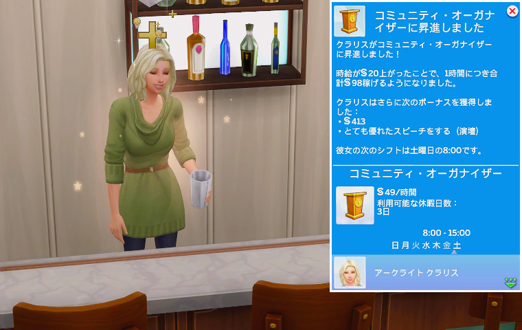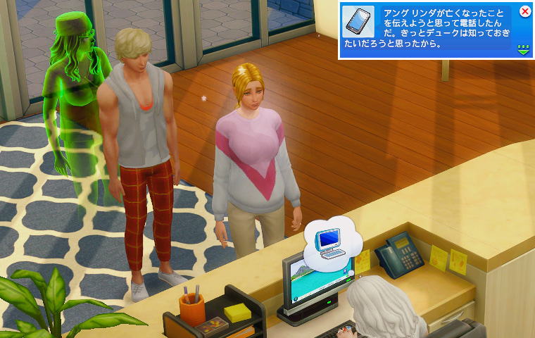 あと連続して色々な通知が入ったせいで、ダリアが受け取った電話のポップが出ませんでした。Sims4そういうところある。