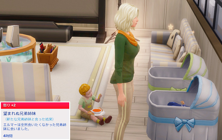 驚いてしまいましたが、デフォルトシムであるユキちゃんの髪の色をちゃんと受け継いでいるのは嬉しいです。