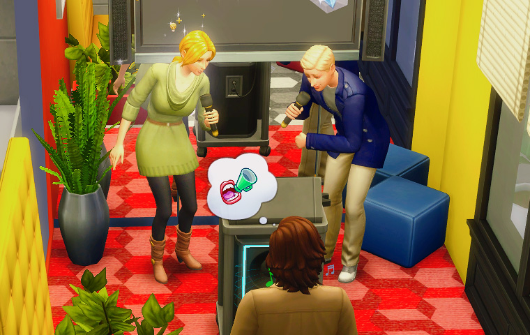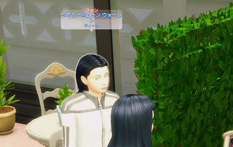 こっちの方がシムたちが集まってるな~、リリスちゃん夫妻も来てるな~、と思いながら見慣れないシムたちを見ていたのですが。