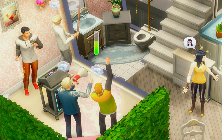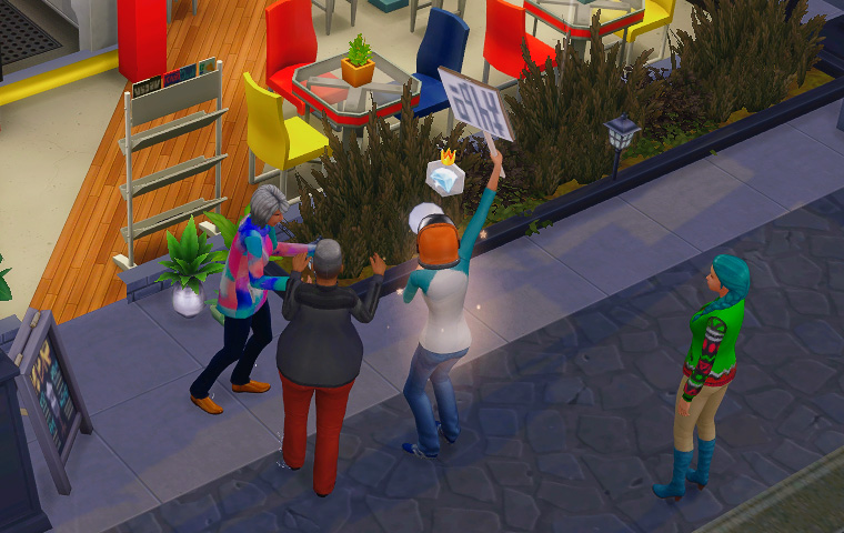 前にいるのはパパラッチです。アークライト家のシムの大半はセレブレベルが高いので、すぐにパパラッチやファンがやって来ます。